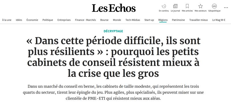 Les petits cabinets résistent mieux à la crise que les mastodontes du conseil (Les Échos)